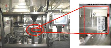 在使用TURCK的電容式傳感器之前,客戶也使用過其它品牌的電容式傳感器,但是由于其內(nèi)部電路缺乏有效地屏蔽和補(bǔ)償電路,開關(guān)距離較短,響應(yīng)時(shí)間較慢,從而嚴(yán)重影響了生產(chǎn)效能。在使用過程中,由于開關(guān)距離短,經(jīng)常需要調(diào)整傳感器的安裝位置;但是由于制藥行業(yè)的特殊性,需要停機(jī)將盛粉環(huán)內(nèi)的藥粉清除干凈才能改變傳感器的安裝位置,否則會(huì)污染盛粉環(huán)內(nèi)的藥粉,導(dǎo)致整批藥粉報(bào)廢,但是反復(fù)停機(jī)勢必會(huì)影響填充機(jī)的工作效率;再有,在膠囊的填充過程中,為了避免造成藥粉的浪費(fèi),對于盛粉環(huán)內(nèi)藥粉高度的控制必須是及時(shí)的,并且膠囊的填充劑量必須精確,這就要求傳感器具有比較短的響應(yīng)時(shí)間和比較高的精確度??蛻糁笆褂玫钠渌放频膫鞲衅骶鶡o法完全滿足應(yīng)用的需要。
