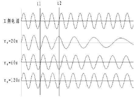 圖12是依據(jù)τp=20s的系統(tǒng)的電動機(jī)感應(yīng)電動勢的等效曲線與工頻電源的相位比較圖。