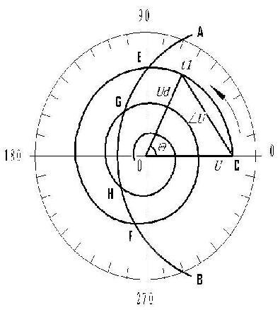 圖5極坐標(biāo)下的電機(jī)感應(yīng)電壓衰減示意圖