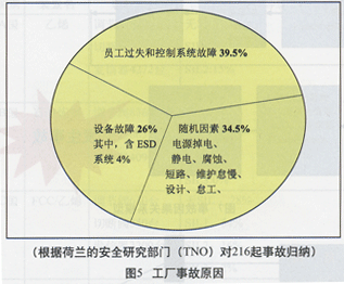 工業(yè)化的推進(jìn),現(xiàn)代大工業(yè)的發(fā)展,在為人類生活提供豐富物質(zhì)產(chǎn)品的同時(shí),也屢屢造成了健康、安全、環(huán)保等諸多災(zāi)難和危害。特別是20世紀(jì)70年代以來(lái),引發(fā)了一系列火災(zāi)、爆炸、毒氣泄漏等重大災(zāi)難。 1984 年12月3日凌晨,在印度博帕爾(Bhopal)市附近美國(guó)聯(lián)合碳化物(Union Carbide)屬下的聯(lián)合碳化物(印度)有限公司(UCIL)農(nóng)藥廠,裝有液態(tài)劇毒氣體一異氰酸甲醋(Methyl lsocyanate., MIC)的儲(chǔ)罐溫度上升,壓力過(guò)大,導(dǎo)致泄漏,濃霧狀毒氣游移于博帕爾市內(nèi)外,經(jīng)久不散,直至45噸劇毒氣體泄漏殆盡。僅2天內(nèi)就有2500余人喪生,最終死亡人數(shù)達(dá)2萬(wàn)5千人,還有5萬(wàn)多人失明,2萬(wàn)多人受到嚴(yán)重毒害,近8萬(wàn)人終身殘疾,50多萬(wàn)人接受治療,受影響的人口多達(dá)150余萬(wàn),占博帕爾總?cè)丝诘囊话搿_@是一起震驚世界的慘案,是有史以來(lái)最殘酷的工業(yè)污染事故。按說(shuō),農(nóng)藥廠的液化甲基異氰酸鹽氣體被儲(chǔ)存在 3 個(gè)不銹鋼制的雙層儲(chǔ)氣罐中,為了防止罐內(nèi)溫度在烈日曝曬下升高,罐體大部分掩埋在地表以下。罐壁間還有致冷系統(tǒng),以確保罐內(nèi)毒氣處于液化狀態(tài)。萬(wàn)一罐壁破裂毒氣外逸,專設(shè)凈化器中和毒氣。假如凈化器失靈,自動(dòng)點(diǎn)火裝置可將毒氣燃燒為無(wú)毒氣體。然而,這些安全措施形同虛設(shè),沒(méi)有發(fā)揮任何作用。 我國(guó)的安全生產(chǎn)形勢(shì)也不容樂(lè)觀,依然嚴(yán)峻。其中,職業(yè)千人死亡率是發(fā)達(dá)國(guó)家的5倍,壓力容器萬(wàn)臺(tái)爆炸事故率是其5~10倍。 為了防止事故,減少損失,國(guó)外稱為高度穩(wěn)定運(yùn)轉(zhuǎn)的技術(shù)(SSOT,Supper Stable Operation Technology)是不可缺少的。圖1為高可靠性的生產(chǎn)過(guò)程示意圖。  另外,為了防止生產(chǎn)裝置在危險(xiǎn)狀態(tài)下造成人身事故和減少環(huán)境污染,作為一種安全停車保護(hù)系統(tǒng),并可進(jìn)行潛在危險(xiǎn)診斷的高效自診斷安全儀表系統(tǒng)(SIS, Safety instrumented system)正在取代以繼電器方式為主的緊急故障停車系統(tǒng)( ESD, Emergency shut down)和消防系統(tǒng)(F&G, Fire&Gas System),如圖 2 所示。  工廠設(shè)計(jì)包括裝置運(yùn)行操作和運(yùn)行性能設(shè)計(jì),要綜合考慮操作性、經(jīng)濟(jì)性、可靠性、安全性,即安全、穩(wěn)定、長(zhǎng)周期、滿負(fù)荷、優(yōu)質(zhì)優(yōu)化生產(chǎn)。裝置設(shè)計(jì)要覆蓋各種運(yùn)轉(zhuǎn)狀況,安全設(shè)計(jì)也要覆蓋各種運(yùn)轉(zhuǎn)情況。裝置運(yùn)行狀態(tài)分類如圖 3 所示。其中,保障安全的關(guān)鍵之一就是安全儀表系統(tǒng)。  一、事故成因與防止 人們對(duì)安全的基本認(rèn)識(shí)是:由于經(jīng)濟(jì)、技術(shù)等條件制約,潛在的危險(xiǎn)不能完全消滅,因此由潛在危險(xiǎn)導(dǎo)致的事故災(zāi)害也就存在,所以就有安全問(wèn)題。以前定義的安全是指完全沒(méi)有危險(xiǎn)(Hazardous)的狀態(tài),而現(xiàn)在認(rèn)識(shí)的安全是不存在不能容許的風(fēng)險(xiǎn)(Risk)。所以,安全管理、安全手段是非常必要的。風(fēng)險(xiǎn)要素的關(guān)系表達(dá)式如圖4所示。  事故的發(fā)生是在一定條件下潛在缺欠的顯現(xiàn)化,并導(dǎo)致不同程度、不同形式的損失后果。以工廠事故為例,事故因果關(guān)聯(lián)及原因分類如圖 5 所示,缺欠形式如圖 6 所示。   美國(guó)安全工程師Heinrich(海因里希)在1931年出版的著作《安全事故預(yù)防:一個(gè)科學(xué)的方法》中提出了著名的“安全事故金字塔”法則,它是通過(guò)分析55萬(wàn)起工傷事故的發(fā)生概率得出的。該法則認(rèn)為,在1個(gè)死亡重傷害事故背后,有29起輕傷害事故,在29起輕傷害事故背后,又有300起無(wú)傷害虛驚事件,以及大量的不安全行為和不安全狀態(tài)存在。因此,災(zāi)害或事故(Accidents)是未預(yù)料事件的連鎖。根據(jù)調(diào)查,多數(shù)的災(zāi)害或事故可以由以下公式表達(dá):失控的危險(xiǎn)因素十失防的危險(xiǎn)目標(biāo)二不希望出現(xiàn)的災(zāi)害或事故。即uncontrolled Hazards+ Uncontrolled Target= Unwanted Act(Accidents)。事故的因果關(guān)系和成因如圖7、8所示。   防護(hù)(Defenses)是從失控的危險(xiǎn)(Uncontrolled Hazards)中將人員、資產(chǎn)、自然環(huán)境等被害對(duì)象進(jìn)行最大程度的保護(hù)而采取的一切必要措施。安全防護(hù)系統(tǒng)包括硬件和軟件。硬防護(hù)(Hard Defenses)指安全設(shè)備、裝置和具有安全功能的阻檔設(shè)施。軟防護(hù)(Soft Defenses)包括操作程序、規(guī)則、制度、指示和培訓(xùn)。 防護(hù)往往采取獨(dú)立、分層的概念,一是加強(qiáng)防護(hù),二是減少損失,三是節(jié)約成本。各層防護(hù)功能獨(dú)立,互不干涉。故也稱為層次防護(hù)見(jiàn)表1。  一個(gè)典型的化工裝置的保護(hù)包括:工藝過(guò)程設(shè)計(jì),基本調(diào)節(jié)、過(guò)程報(bào)警及操作員監(jiān)視,緊急報(bào)警、操作員監(jiān)視并且手動(dòng)千預(yù),自動(dòng)安全儀表系統(tǒng)或緊急停車系統(tǒng),物理保護(hù)(泄壓閥、爆破膜),工廠緊急響應(yīng)