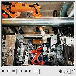 公司選擇是三臺(tái)庫(kù)卡機(jī)器人 KR 125,它們負(fù)責(zé)取出鑄件、噴灑鑄模及置入半固態(tài)鑄錠。通過(guò)機(jī)器人,DTC 將一個(gè)“普通”的鑄造間變成了一個(gè)全自動(dòng)生產(chǎn)平臺(tái)。由此,不但可以檢驗(yàn)包括了取出、冷卻及去除毛刺在內(nèi)的整個(gè)工藝流程的成批生產(chǎn)能力,在必要時(shí)還可以繼續(xù)進(jìn)行優(yōu)化。