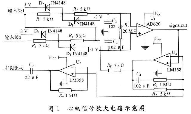 2 電路結構描述,心電信號的傳感、放大及濾波