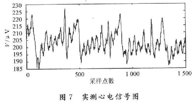 圖7是實際電路測試的結果(縱坐標為μV),可以看到該電路較好地完成了對心電的降噪。當然,在降噪過程中還可以增加屏蔽技術,以進一步減少外部信號的干擾。帶通濾波器還可以設計成只帶一個放大器的濾波器,使電路更為簡單,但是精確率可能會降低。