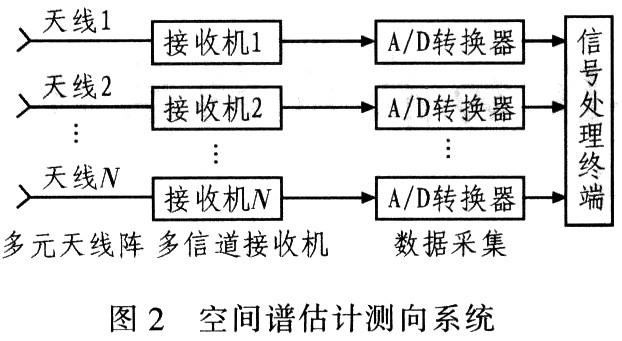 隨著電子技術(shù)的發(fā)展,電子對抗在武器系統(tǒng)中扮演著重要角色,電子對抗體系向多樣化發(fā)展,諸如利用電子干擾設(shè)備直接干擾對方電子系統(tǒng)正常工作的電子對抗方法;利用武器彈藥系統(tǒng)攻擊對方電子設(shè)備。無論采用哪種方法贏得戰(zhàn)場主動,其前提條件是要知道對方通訊設(shè)備、無線電通信以及其他發(fā)射無線電信號的電子設(shè)備的方位。此外,為了實施對多源(如多發(fā)引信、多臺通信機或干擾機)的干擾,需有效利用我方干擾機的功率資源,確定發(fā)射源的方位,可采用轉(zhuǎn)動接收天線的角度確定發(fā)射源方位。但這種方法存在測角精度和測量速度的矛盾,難以滿足空間存在多個運動目標時,確定各目標方位的要求。而空間譜估計測向技術(shù)可實現(xiàn)對空域中多個目標的同時超分辨測向,因此,這里給出空間譜估計測向系統(tǒng)設(shè)計方案。