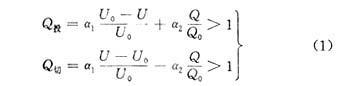 組織級是本系統(tǒng)的最高級,承擔(dān)著最優(yōu)決策的功能。當(dāng)前變電站綜合控制大部分仍是按照傳統(tǒng)的九區(qū)控制方法,利用電壓和無功功率雙參數(shù)將變電站運(yùn)行狀態(tài)分為九個區(qū),根據(jù)各個區(qū)所對應(yīng)的控制方案進(jìn)行調(diào)節(jié)。但是,在該控制系統(tǒng)中,無功調(diào)節(jié)判據(jù)是一個與電壓無關(guān)的平行于電壓坐標(biāo)軸的固定邊界,沒有充分考慮無功調(diào)節(jié)與電壓調(diào)節(jié)相互間的協(xié)調(diào)關(guān)系。根據(jù)“保證電壓合格,無功基本平衡,盡量減少調(diào)節(jié)次數(shù)”的變電站電壓和無功綜合調(diào)節(jié)的基本原則,無功調(diào)節(jié)邊界應(yīng)當(dāng)是一個受電壓狀態(tài)影響,且在一定范圍內(nèi)服務(wù)于電壓調(diào)節(jié)的模糊邊界。因此,我們對傳統(tǒng)的控制策略也作了改進(jìn),引入了無功調(diào)節(jié)判據(jù),提出了模糊邊界的無功調(diào)節(jié)?;陔妷号c無功的相互影響,對電容器組的投切判據(jù)建立如下數(shù)學(xué)模。