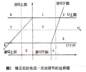 根據(jù)上面推導(dǎo)出的數(shù)學(xué)模型,可以得到修正后的電壓無功雙參數(shù)調(diào)節(jié)的模糊邊界,如圖2所示。