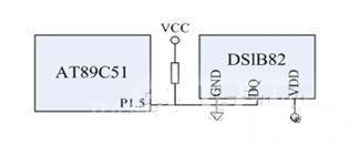 由于溫度每改變10℃,聲速改變量為0.6m/s,因此溫度對測距的影響是相當大的。為了更精確的實現(xiàn)檢測功能,本設(shè)計使用了美國DALLAS半導體公司的單線溫度傳感器DS18B20。該傳感器能夠直接讀出被測溫度并且可根據(jù)實際要求通過簡單的編程實現(xiàn)9~12位的數(shù)字值讀數(shù)方式,測溫范圍-55℃~+125℃,精度達±0.5℃,現(xiàn)場溫度直接以“一線總線”的數(shù)字方式傳輸,大大提高了系統(tǒng)的抗干擾性,整個產(chǎn)品體積小、價格低、使用靈活,在測溫精度、轉(zhuǎn)換時間、傳輸距離、分辨率等方面都能夠滿足系統(tǒng)的要求。如圖4為溫度傳感器與單片機的連接原理圖。