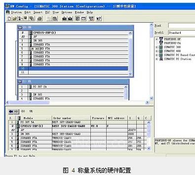 整個生產工藝共分為4套相對獨立的稱重配料系統(tǒng),介紹酸中性稱量系統(tǒng),該系統(tǒng)共有40個稱重料倉, 使用7個SIWAREX FTA稱重模塊集成到一臺S7-315-2DP CPU上,通過Profibus DP總線連接到上位機系統(tǒng)內。