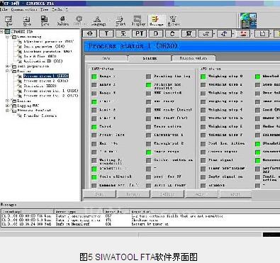 對于現(xiàn)場的調試和標定,西門子提供了基于Windows操作系統(tǒng)的SIWATOOL FTA專用程序。使得技術人員無需了解PLC編程方面的知識就能夠方便的設置和調試秤,并且在軟件中方便的查詢秤的各種運行狀態(tài)及參數,如圖