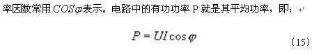 正弦電路中,功率因數(shù)是由電壓U與電流I之間的相位角差決定的。在此情況下,功率因數(shù)常用 表示。電路中的有功功率P就是其平均功率,即: