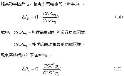 配電系統(tǒng)的電流下降率和配電系統(tǒng)的損耗下降率都是對(duì)單臺(tái)電動(dòng)機(jī)補(bǔ)償前后電流和損耗而言,不是指配電系統(tǒng)電流和損耗的實(shí)際變化。