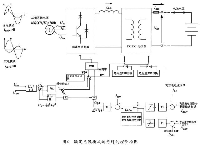圖2為APL2定電流模式運(yùn)行時(shí)的控制框圖。進(jìn)行充放電運(yùn)行時(shí),從計(jì)算機(jī)下載下來(lái)的模式數(shù)據(jù)作為電流指令值,進(jìn)行定電流控制。在充電過(guò)程中,電池電壓達(dá)到預(yù)先設(shè)定的最大電壓值時(shí),自動(dòng)切換到定電壓控制方式和涓流充電模式。