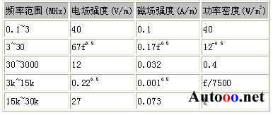 表1是公眾照射極限值(GB8702-88)的情況。