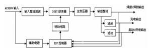 多功能電源集成了焊接、焊割、充電、起動、穩(wěn)壓供電五種供電功能。電源控制系統(tǒng)主要由功率主電路、DSP控制回路以及其他輔助電路組成。系統(tǒng)原理圖如圖1所示。
