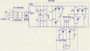 輸入整流濾波電路包括:熔斷器SR、三相轉(zhuǎn)換開關(guān)K、三相橋整流器D0、合閘浪涌限制電路(主回路軟啟動電路)及濾波電路。主回路軟啟動電路的作用是為了防止在合閘瞬間造成:(1)電源開關(guān)接點熔斷;(2)輸入保險絲熔斷;(3)對其他相鄰電路產(chǎn)生干擾;(4)惡化電容器和整流器的性能。