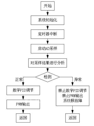 控制系統(tǒng)的軟件主要包括系統(tǒng)初始化程序、ADC采樣程序、PWM波生成程序、PID控制算法程序等。軟件總體設(shè)計流程如圖7所示。