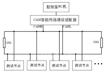系統(tǒng)結(jié)網(wǎng)絡(luò)構(gòu)如圖1所示。該系統(tǒng)主要由上位計算機及監(jiān)控軟件、基于PCI總線的CAN智能網(wǎng)絡(luò)通信適配器及與其相配套的設(shè)備驅(qū)動程序(WDM)、現(xiàn)場控制節(jié)點單元和基于CAN現(xiàn)場總線其他功能模塊組成。