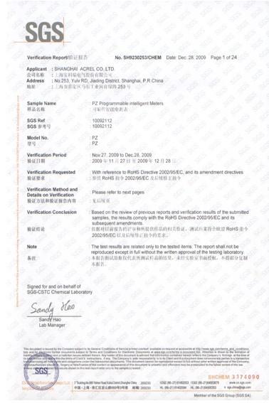 2009年12月10日我司的PZ可編程智能電測(cè)表經(jīng)過(guò)TUV公司的SVHC監(jiān)測(cè),測(cè)試結(jié)果符合歐盟REACH法規(guī);2009年12月28日該儀表經(jīng)過(guò)SGS公司的驗(yàn)證,測(cè)試結(jié)果符合歐盟RoHS指令2002/95/EC以及后續(xù)修正指令的要求。