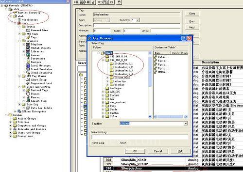 在AB系列 PLC控制系統(tǒng)一側(cè),只需在HMI軟件FactoryTalk View Studio中新建OPC,并選yOPCServerDA.3,在FactoryTalk View Studio中運(yùn)行Tag Browser,新建Tag點與網(wǎng)關(guān)中新建OPC中的Tag點(如下圖:192_168_0_10中Tag點)進(jìn)行連接并進(jìn)行HMI畫面組態(tài),就能正確顯示測量值。