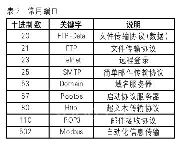 TCP是使用端口(Socket)號把信息傳到上層,為用戶提供不同服務(wù),端口號跟蹤同一時(shí)間內(nèi)通過網(wǎng)絡(luò)的不同會(huì)話。RFC1700中定義了眾所周知的特殊端口號,常用端口如表2所列。其中502端口是自動(dòng)化公司唯一所擁有的端口號碼。