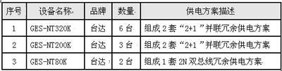 成都市南部副中心科技創(chuàng)業(yè)中心二期B樓項(xiàng)目各相應(yīng)的機(jī)房中共放置42U標(biāo)準(zhǔn)服務(wù)器機(jī)柜約500架,為確保企業(yè)高效、安全、可靠的正常運(yùn)行,采用臺達(dá)11臺NT系列UPS組成的4套供電系統(tǒng)分別為不同類型的設(shè)備及應(yīng)用場所提供電力保障,設(shè)備配清單如下表: