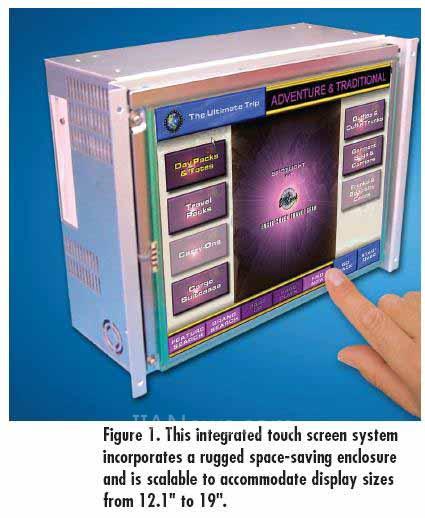 圖1:集成式觸摸屏系統(tǒng)包含一個耐磨損的狹小外殼,該系統(tǒng)可以升級以適應(yīng)從12.1英寸到19英寸的顯示器尺寸。