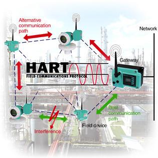 現(xiàn)在,HART創(chuàng)新進(jìn)入了新的階段。2007年9月無線HART 標(biāo)準(zhǔn)發(fā)布。這個標(biāo)準(zhǔn)以HART 協(xié)議為基礎(chǔ),對物理傳輸路徑?jīng)]有限制。HART 采用2.4GHz 波段(免費(fèi)且全球通用)做為幾種無線技術(shù)的傳輸頻率,其中包括WLAN,藍(lán)牙及ZigBee. 為了避免2.4GHz頻率波段的干擾,無線HART特意開啟了對波段內(nèi)未用頻道的搜索功能,可隨時控制避免相互的干擾。