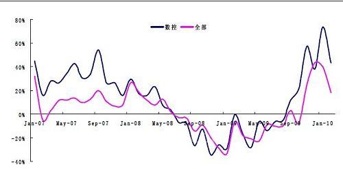 因而,我們認(rèn)為2 月份產(chǎn)量增速的下滑是機床行業(yè)邁入景氣高峰過程中的正常調(diào)整,沒有改變行業(yè)景氣度逐步攀升的趨勢。機床行業(yè)景氣度的持續(xù)攀升,符合我們在2009 年底對行業(yè)運行的判斷:機床行業(yè)景氣高峰將出現(xiàn)在2011 年2 季度左右,因而2010 年將是機床行業(yè)邁入景氣高峰的一年。