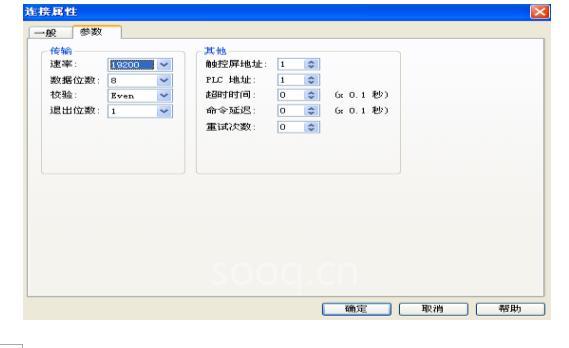 2、通訊參數(shù)的設(shè)定要與PLC的通訊參數(shù)一至如下圖: