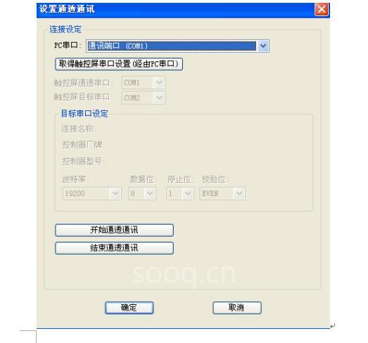 2 下一步(1、選擇PC與PLC的連接端口2、后點擊取得觸模屏串口設(shè)置)