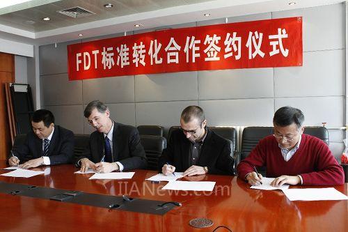 2010年4月6日下午,在機械工業(yè)儀器儀表綜合技術(shù)經(jīng)濟研究所(ITEI)舉行了“FDT標準轉(zhuǎn)化合作簽約儀式”。FDT全球常務理事Glenn Schulz 先生,F(xiàn)DT中國市場主席Michael Sinz先生,機械儀器儀表綜合技術(shù)經(jīng)濟研究所所長歐陽勁松教授,西南大學自動化研究所所長劉楓教授出席本次活動,并共同簽署了合作協(xié)議。制定了由國家標準化管理委員會為工作中心下達FDT標準制定項目,全國工業(yè)過程測量和控制標準化技術(shù)委員會第2分技術(shù)委員會 (SAC/TC124/ SC2)負責歸口,將FDT國際標準IEC62453轉(zhuǎn)化為中國國家標準化推薦性技術(shù)(GB/T)標準。