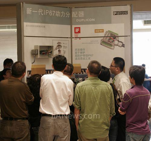 除了現(xiàn)場連線之外,與會議同步舉辦的Mini Fair亦讓參會客戶眼前一亮,菲尼克斯電氣的最新產(chǎn)品和技術(shù)都一覽無余地展示在客戶眼前。在會議召開前后及茶歇時間,參會客戶與我公司工程師們一邊參觀Mini Fair一邊交流相關(guān)技術(shù)問題,濟(jì)濟(jì)一堂,言談甚歡。