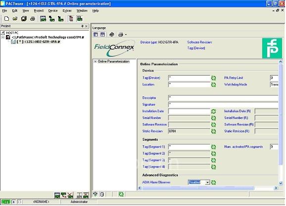 1. 啟動 FDT 程序,然后按網(wǎng)絡管理員登錄。下面的過程是使用 PACTware 3.0 軟件的情況。
