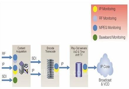 從設(shè)備到內(nèi)容、從采集到傳輸,所有環(huán)節(jié)的檢測都非常關(guān)鍵,其中某一個技術(shù)環(huán)節(jié)出現(xiàn)問題都會影響到圖像質(zhì)量,進而影響到最終用戶體驗。就內(nèi)容而言,隨著三網(wǎng)融合的推進,將涌現(xiàn)更多的內(nèi)容提供者,如何在包括后期制作、高清制作、廣告制作等方面檢測圖像顏色、幅度、亮度、色域等質(zhì)量指標,特別是涌現(xiàn)的大量基于文件的視頻的質(zhì)量檢測對于傳統(tǒng)的檢測和監(jiān)測模式帶來很大的挑戰(zhàn)。在設(shè)備方面,要開展和享受新的IP業(yè)務(wù),電視臺、網(wǎng)絡(luò)公司或者電信公司需要采購新的系統(tǒng)設(shè)備,用戶也要配備新的終端,如互聯(lián)網(wǎng)電視機、IP機頂盒等,這些設(shè)備的選購和測試都必須借助于功能強大的檢測和監(jiān)測工具。