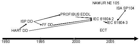 下一步,EDDL的能力進一步擴展,做為一種工業(yè)標準解決方案,用于智能設(shè)備信息的可視化顯示,解決了早期設(shè)備描述DD不能可視化顯示的問題??梢暬募尤氩]有偏離原有的概念。圖形(存儲的波形)、圖表(連續(xù)趨勢圖)、柵格(表格)、和圖像與更好的菜單和方法一同加入到界面中來。數(shù)據(jù)的持久長期存儲和還原比較能力也加入進來。在2006年,EDDL 被批準為一種國際標準 IEC 61804-3。EDDL 已包括在 OPC-UA 的規(guī)范之中。已經(jīng)成立一個組織,試圖把 EDDL 也變成 ANSI/ISA 標準。這個努力已經(jīng)在2007年3月變成現(xiàn)實。