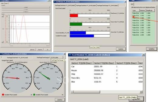 圖9 軟件用EDDL 對用戶顯示所有的設(shè)備功能(圖中依次為:趨勢、棒圖、柵格、表頭和表格)