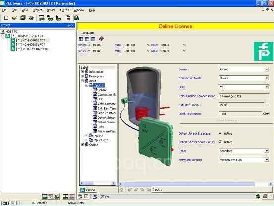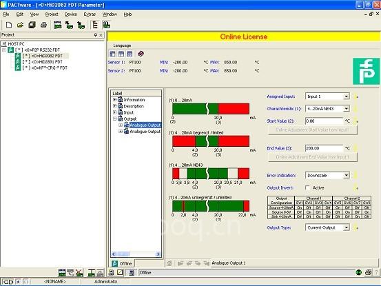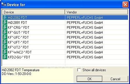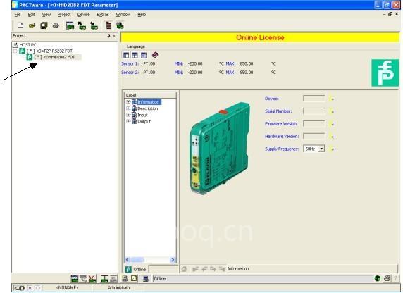 這個設備列表都是PEPPERL+FUCHS GmbH公司支持P2P RS232 FDT驅(qū)動器接口的設備模塊,比如第一項:HiD2082 FDT就是一個溫度模塊。我們選擇它并按OK按鈕,就會出現(xiàn)下面的圖形,