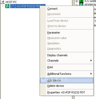 用鼠標點住剛建立的子目錄[*]<0>P2P RS232 FDT,按右鍵,會出現(xiàn)以下菜單,