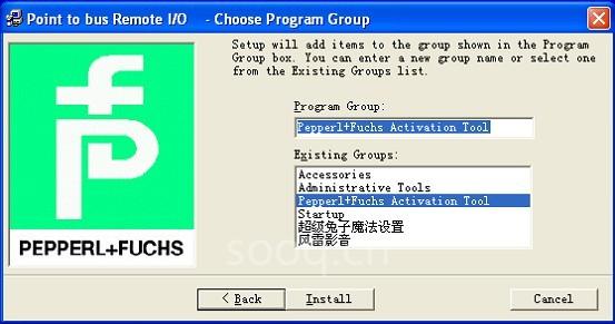 圖14 畫(huà)面表示程序安裝后會(huì)建立一個(gè)程序組,也就是當(dāng)單擊Windows 啟動(dòng)按鈕時(shí),在所有程序的上拉菜單中,會(huì)出現(xiàn)Pepperl+Fuchs Activation Tool的字樣,意為激活Pepperl+Fuchs GmbH公司的工具軟件。你可以新建一個(gè)程序組,如缺省的Pepperl+Fuchs Activation Tool,也可以選擇已經(jīng)存在的程序組。