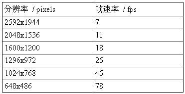 下表列出了在不同分辨率下該系列工業(yè)相機(jī)所能達(dá)到的最大幀速率: