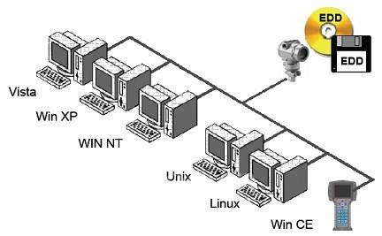 非常像 XML 和 HTML 網(wǎng)頁(yè),EDDL 技術(shù)是獨(dú)立于操作系統(tǒng)的。它可以工作于不同的視窗版本,如 Windows、Windows CE、Linux、Palm 或其他操作系統(tǒng)。它還可以工作于不同的微處理器上,并且沒(méi)有屏幕尺寸、彩色和單色的要求。因此,EDDL 是一種單一通用技術(shù)的解決方案,可用于手持通信器、配置軟件和智能設(shè)備管理軟件--做為資產(chǎn)管理軟件包的一部分,甚至能夠嵌入至設(shè)備之中。EDDL 免除了附加解決方案的需求。不同的應(yīng)用以不同的方法使用 EDDL。智能設(shè)備管理軟件可以使用EDDL的所有特性,比如:性能分析;操作員流程可視化軟件可以使用EDDL,比如:顯示流程變量; 配置工具可以使用EDDL,比如:建立一個(gè)功能塊的控制策略。這些不同的任務(wù)可以由不同的人員或使用不同的工具來(lái)完成。