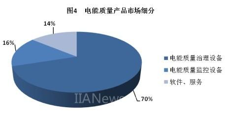 由于我國(guó)尚處于電能質(zhì)量產(chǎn)品的初級(jí)階段,而且很多建廠較早的大型企業(yè)尚未完成自動(dòng)化改造,因此電能質(zhì)量治理設(shè)備在所有產(chǎn)品中需求最高,約占整體的70%。而監(jiān)控設(shè)備和軟件、服務(wù)大約各占整體市場(chǎng)的15%左右,監(jiān)控設(shè)備的比例略高。未來(lái),隨著工業(yè)自動(dòng)化水平的提高,和電能質(zhì)量意識(shí)的增強(qiáng),軟件和監(jiān)控設(shè)備的比例將有所提高。