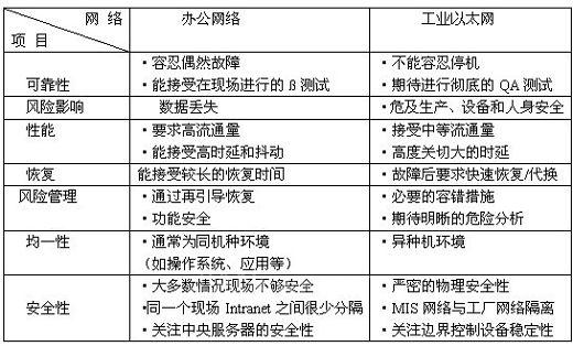 3、 辦公網(wǎng)絡(luò)和工業(yè)自動(dòng)化網(wǎng)絡(luò)之間主要差別: