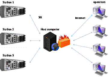由于電力設備包括電站內的一個獨立系統(tǒng),操作者保持可靠的遠程通信至關重要。為了確保測量單元的可移動性,我們選擇了使用3G調制解調器和一個小路由器的解決方案。一個 PC主機處理與操作者的通信,如圖2所示。此外,該小組使用LabVIEW應用程序生成器設計了一個易于使用的界面,這主要是因為大部分操作員缺乏LabVIEW的使用經驗。