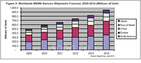 iSuppli公司對2009-2014年MEMS傳感器市場的預(yù)測