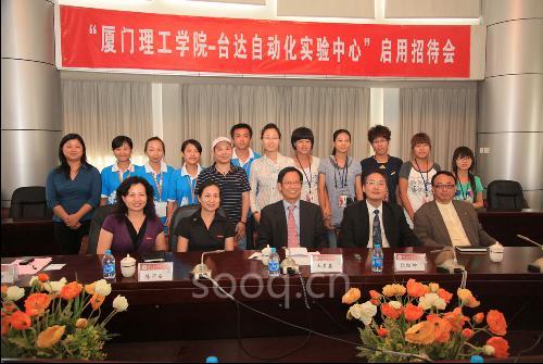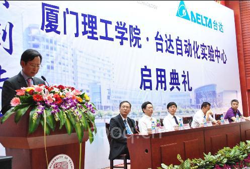 廈門市副市長詹滄洲先生、廈門理工學院副校長朱文章教授、中達電通總經理王其鑫先生、福建省教育廳港臺辦副主任廖德強先生、福建省自動化學會副理事長彭俠夫教授、中達電通機電事業(yè)部營銷總監(jiān)張紹坤先生等領導專家親臨現場,并與數百名高校師生一起參加了臺達實驗中心的揭牌儀式。