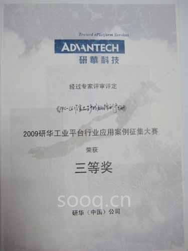 在此后的《2009研華工業(yè)系統(tǒng)平臺行業(yè)應(yīng)用案例大賽》的評選中,我公司榮獲三等獎