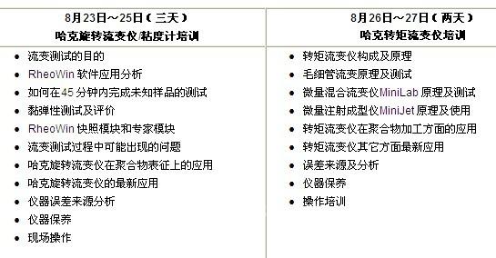 中國,上海(2010年7月1日)--服務科學,世界領(lǐng)先的賽默飛世爾科技公司材料表征誠邀您參加2010年8月23日至27日為期五天的Thermo Scientific HAAKE流變儀用戶培訓班. 您不僅可以聆聽哈克技術(shù)專家的親自講解,還可以有機會面對面進行深入的技術(shù)交流,解答您最關(guān)心的問題。同時能獲得新版《實用流變測量學》一書和完整的培訓教材,從而獲得更好的培訓效果。