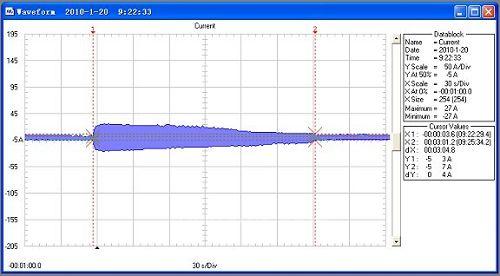 由此可見(jiàn)每次剎車時(shí),制動(dòng)單元必然工作,最大電流達(dá)27A。而制動(dòng)單元的額定電流為45A。顯然制動(dòng)單元處于半載狀態(tài)。