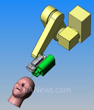 我們將注意力集中在把PRS系統(tǒng)的應(yīng)用擴(kuò)展到更為常見(jiàn)的橢圓腫瘤病變的病人。輻射量必須沿腫瘤病變的主軸進(jìn)行分布,從而使輻射球形范圍可以覆蓋到整個(gè)腫瘤病變區(qū)。由于執(zhí)行該動(dòng)作需要一定的精度,因此需要用到機(jī)器人系統(tǒng)。所以,我們開(kāi)發(fā)了用于神經(jīng)外科的線性驅(qū)動(dòng)器(LANS)。